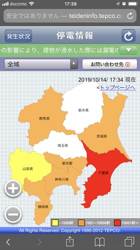 こんにちは!フミタカです。 現在の停電状況! 確実に改善されている! まだ停電してる地域は多い! 房総ダム湖は! 現在の停電状況! これは10月14日の17:38位の停電状況ですね!見た感じ千葉県が停電してる世帯多いですね!でも実際停電が少なく見える県で…