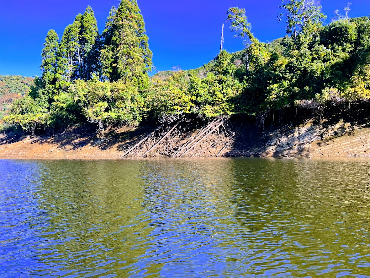 この日は、ヘラ師の方の大会が2つもあったようで、湖は大混雑!おまけに大減水で釣る場所に苦労しました。